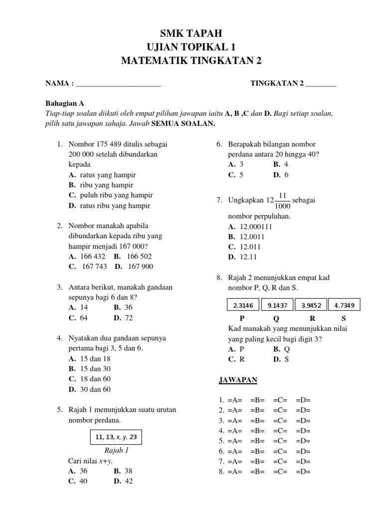 Unduh sebagai docx, pdf, txt atau baca online dari scribd. With the free sumatra pdf, you. Perkongsian bahan pembelajaran teacher sinta ini boleh dimanfaatkan . Tunggu 5 saat dan klik >> skip ad. Soalan matematik tingkatan 1 by siti_yajid.